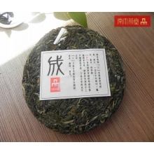 茶品用料:2012的早春3月底前无量山古树茶,荒山茶园,多年没管理,生态环境极好。茶园海拔约1800米,跟居住区较远,较偏。传统手工杀青工艺、自然晒青。因茶园缺少管理,从没施过肥,条索较瘦,滋味足,有少许小黄片。采用手工石磨压制,自然干躁,适合收藏与品饮。从鲜叶、晒青、杀青、压饼至干躁,都是公司各员工亲自督促完成。